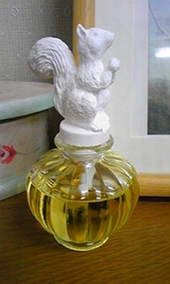 香りの媒介・発散役である、リスちゃんの飾りも乗せました。とてもいい匂いが机周辺にただよっています。もっと早く人を頼るんだった!