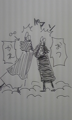 ●この世はみんなで劇をやっているようなもので、あの世に行ったら、敵だった人も味方だった人も人生に関わった人は皆、舞台の打ち上げのごとく、『おつかれさまー!』とワイワイやっている…と。つまり、召されてきたスネイプをこう、リリーから仕掛人ズから校長からそのほかの戦死者たちからみんなが、「おースネイプおかえりー!お疲れさまー!」って出迎えてくれて、スネイプも「ああなんとかやってきたぞ」とかって普通にみんなと握手とかするという、感じです(※写メ1参照)。