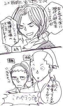●の、新選組ネタ。状況を説明すると、一日だけみんなであの世から現代に来たら、土方だけ携帯とか見ても驚かないから、理由を聞いたら…っていう…