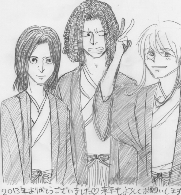 ●今年は来てくださって&見てくださってありがとうございました!とうとうスネイプ先生、グンマ様に、阿含が割って入る事態になった描き納めです(スペースがあれば真田さんも描きたかった・・・!)。来年もがんばっていきますのでよろしくお願いします!!!みなさま、良いお年を!